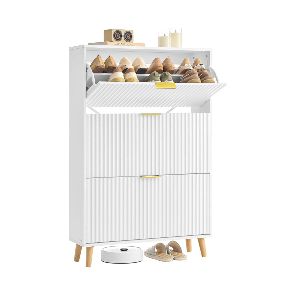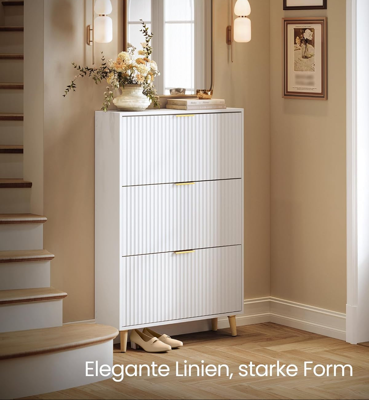 Schuhschrank mit 3 Türen – Mid-Century Modern – Geriffelte Türen – Für 18–24 Paar Schuhe – Wolkenweiß – 80 x 24 x 123 cm
