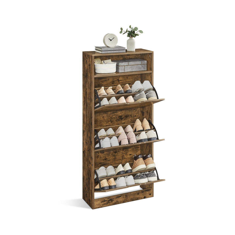 Schuhschrank mit 3 Klappen – Schuhregal – Schuhaufbewahrung im Industriestil mit Stahl- und Holzoptik