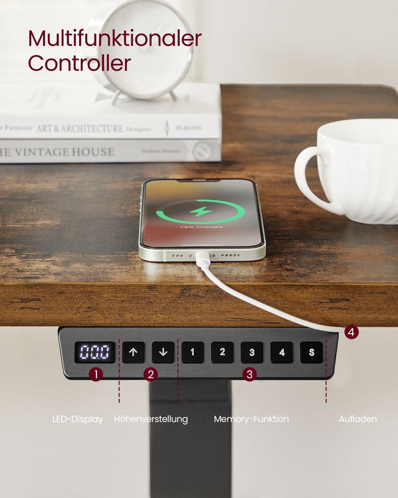 Elektrischer Stehschreibtisch - Höhenverstellbar - Mit Memory-Funktion - 4 Speichereinstellungen