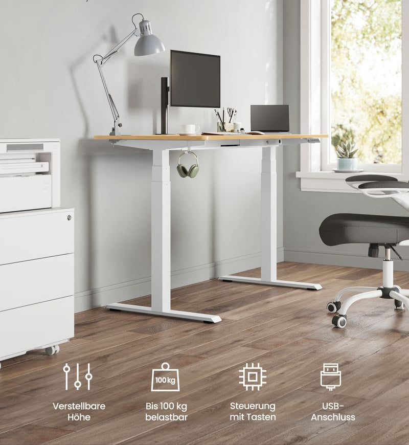Elektrisches Sitz-Steh-Schreibtischgestell – Doppelmotor – Höhen- und breitenverstellbar – Bis 100 kg Tragkraft – Mit Controller, USB-Anschluss und Rollen