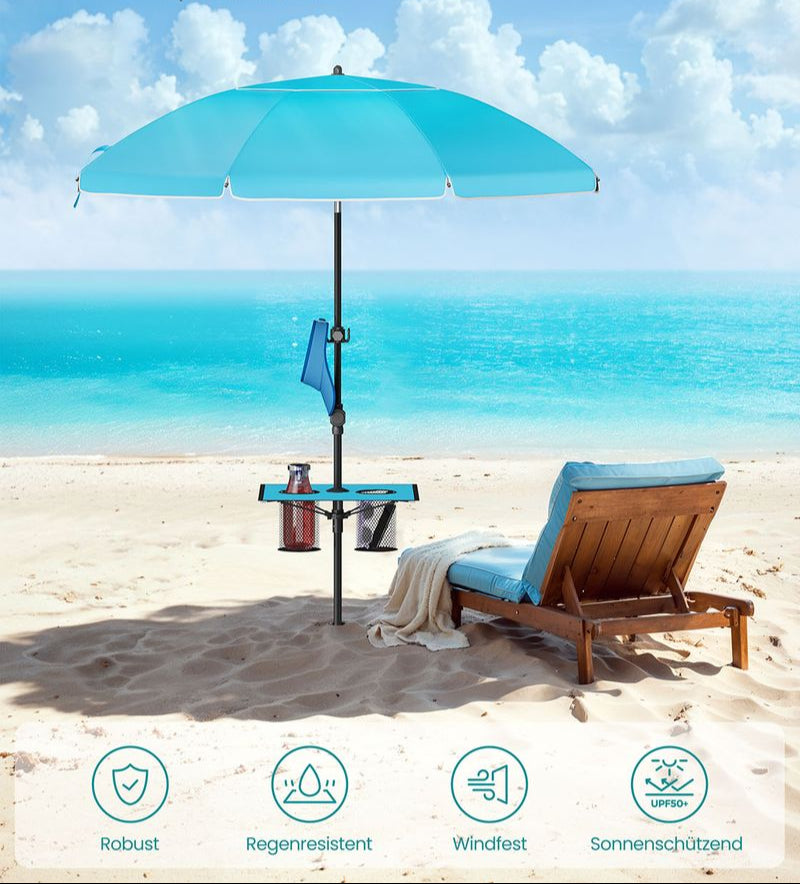 Strandsonnenschirm mit Aufbewahrung – Ø160 oder 200 cm – Verstellbar – UV-Schutz LSF 50+ – Inklusive Tragetasche