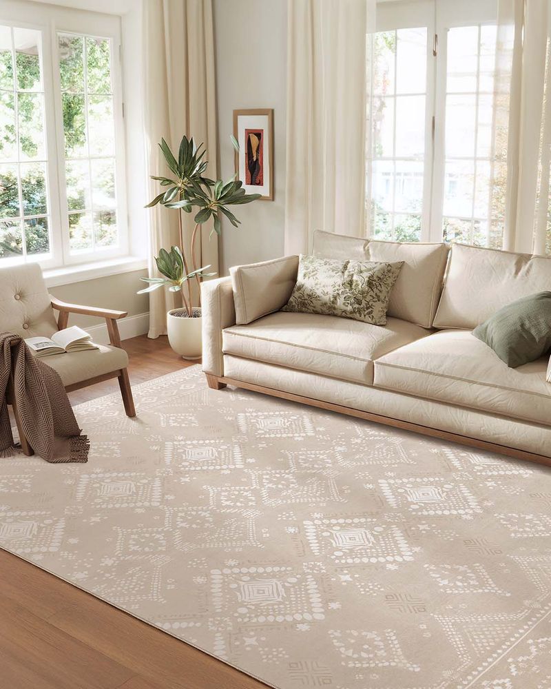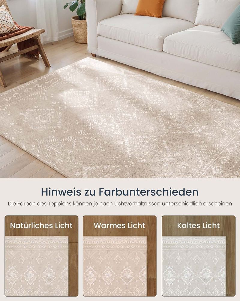 Die detaillierten Boho-Muster und die natürlichen Farben verleihen jedem Raum Wärme und Stil. Ob Cappuccinobeige, Sandbeige oder Grau – dieser Teppich passt perfekt in moderne und rustikale Innenräume.