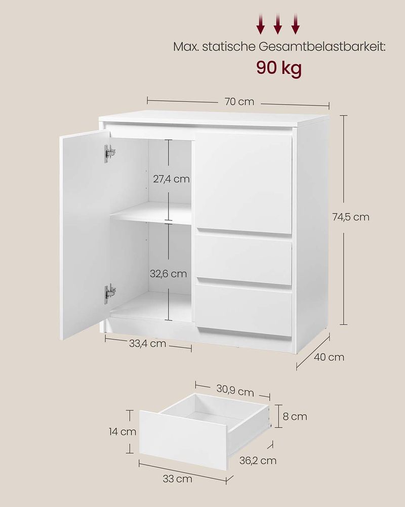 Aufbewahrungsschrank – KAILYN Kollektion – Wolkenweiß – Modern & minimalistisch