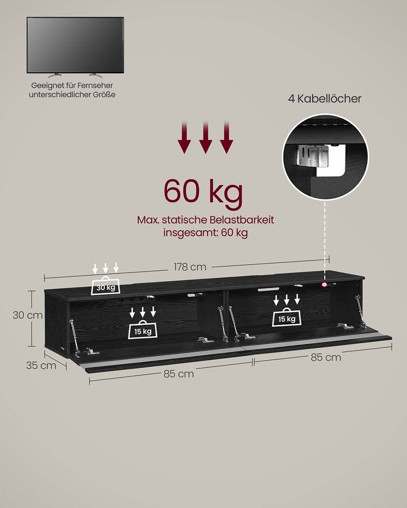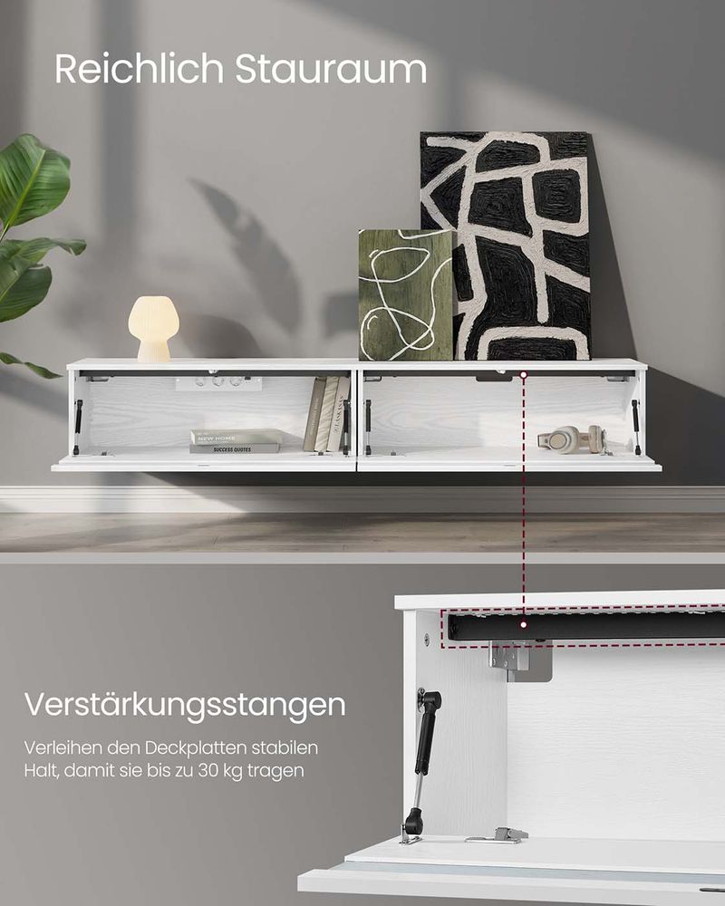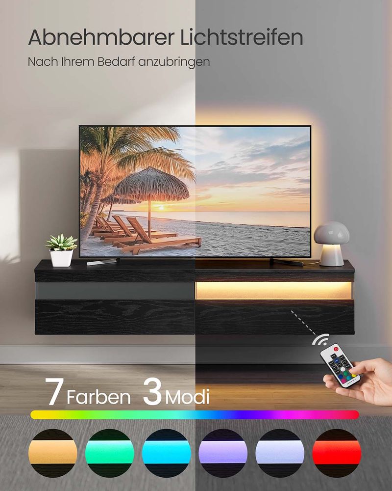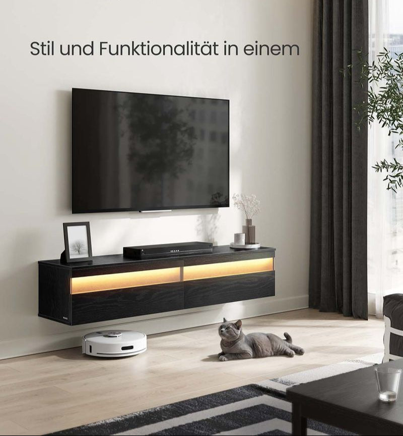 Schwebender TV-Ständer – Mit LED-Beleuchtung und Ladestation – Inkl. Wandmontage