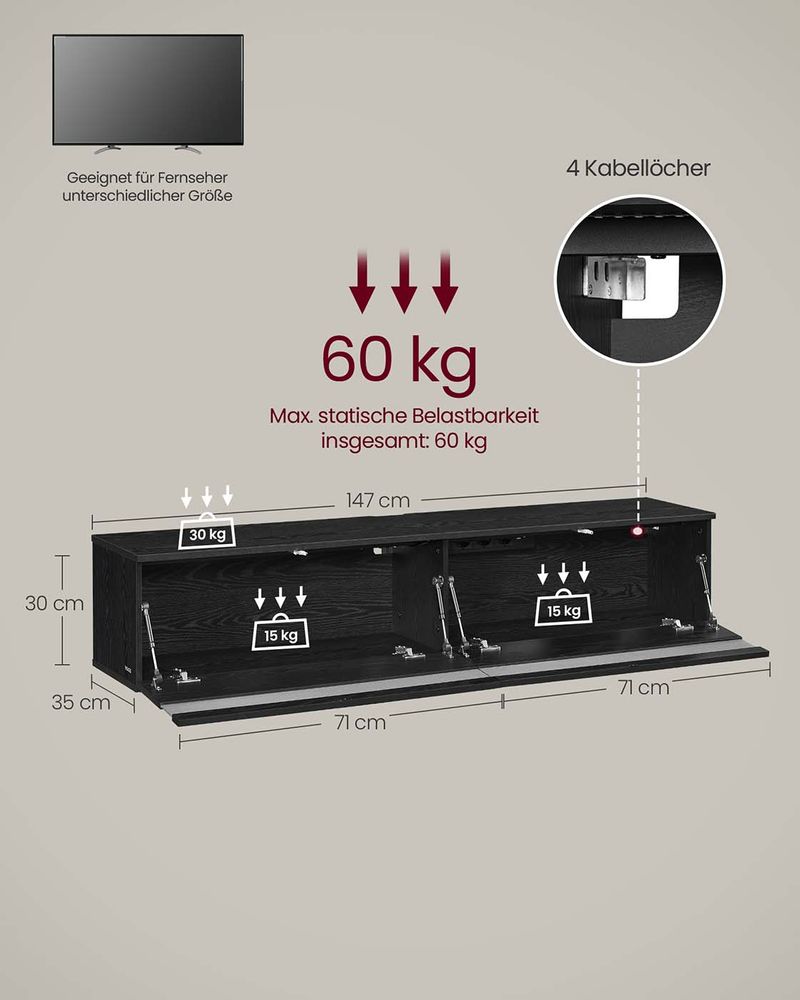 TV-Schrank bis 65 Zoll – skandinavisches Design – mit Stauraum und Kabelmanagement