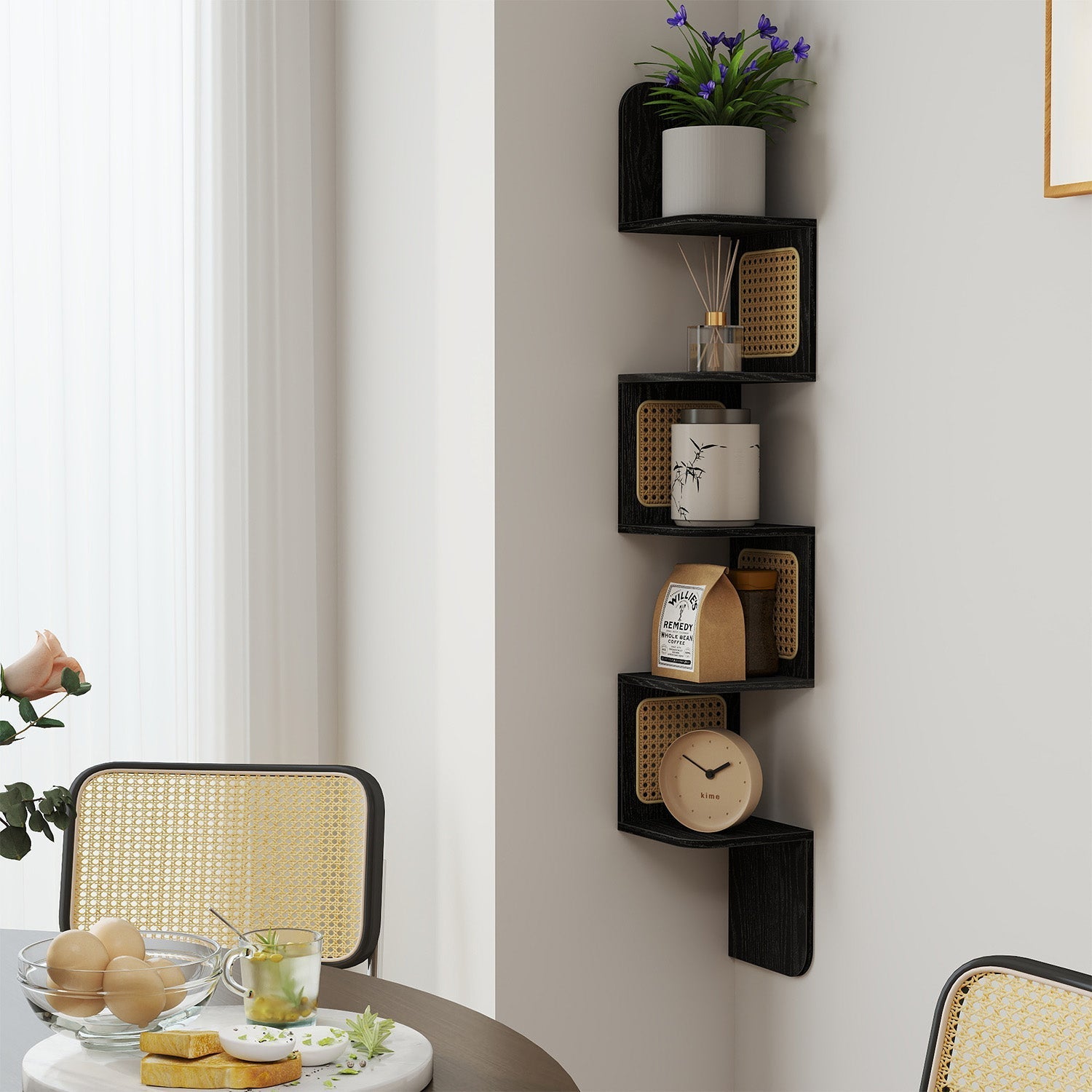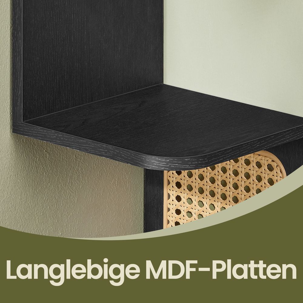 BOHO Wandregal in Rattanoptik – Schwebendes Zickzack-Wandregal – 126 cm hoch – Schwarz oder Weiß – Bis 25 kg belastbar