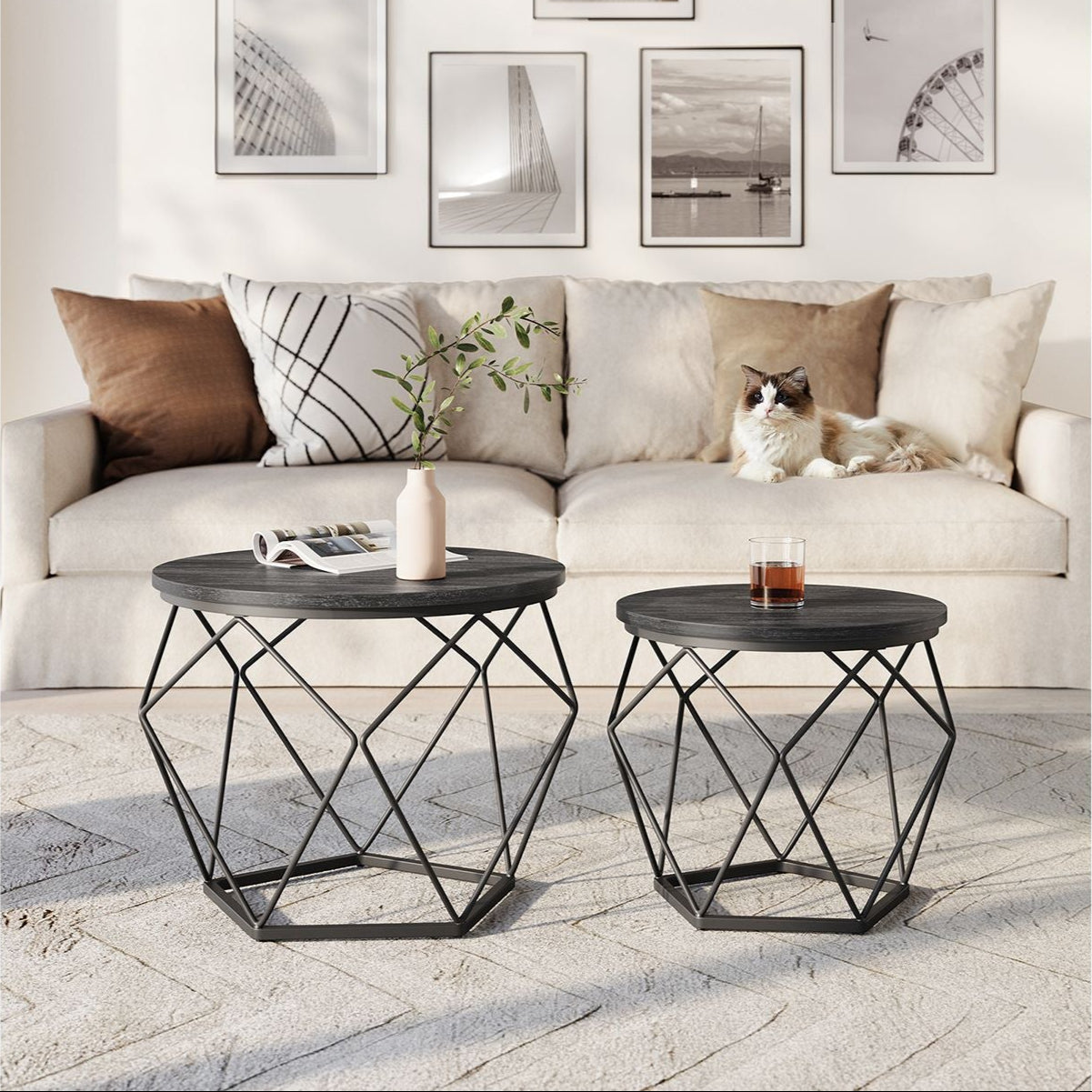 2er-Set runde Beistelltische – Modernes Design – Schwarz – Kompakt und multifunktional