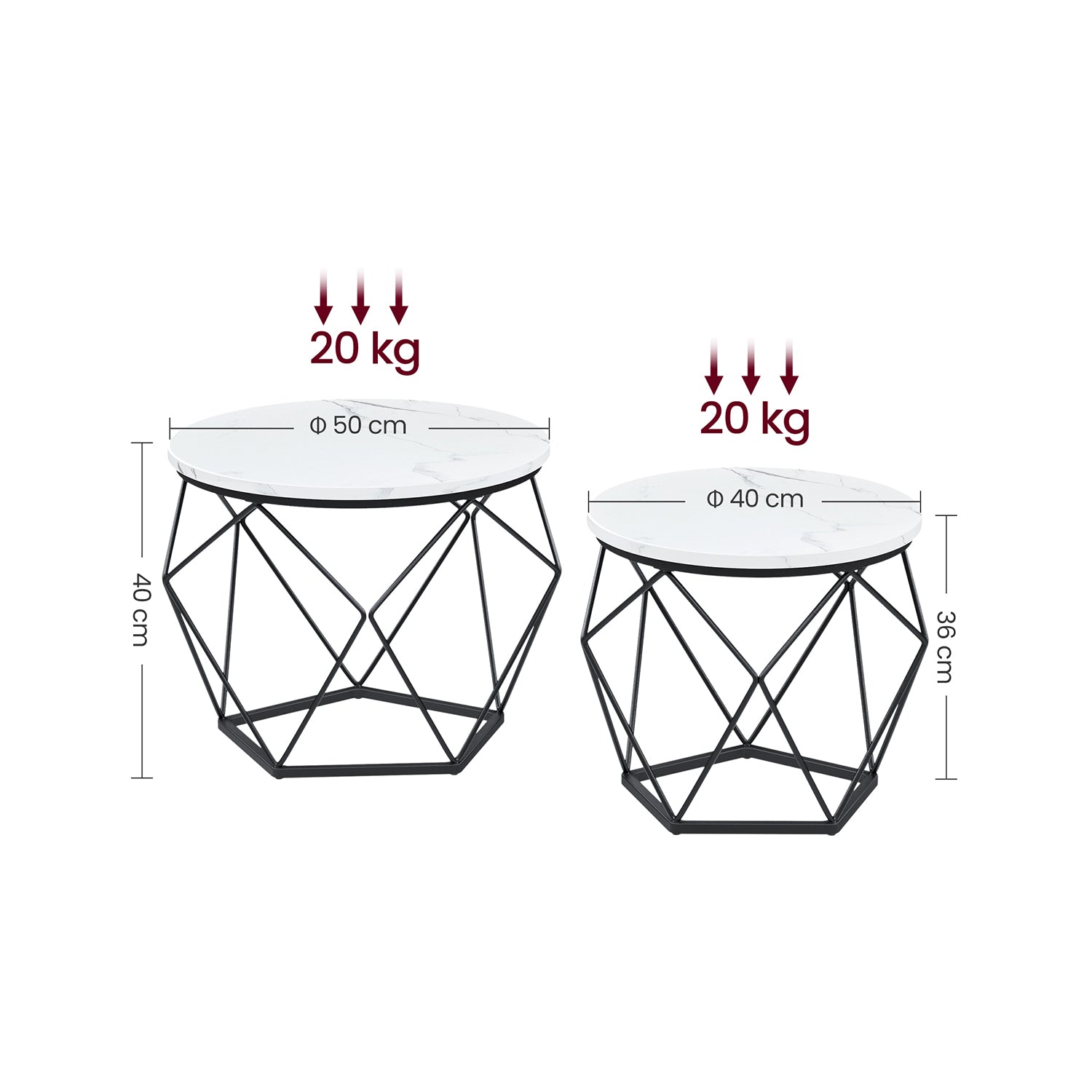 Dieses Set aus zwei Beistelltischen von De Vries Meubels besteht aus einem großen Tisch (50 x 40 cm) und einem kleineren (40 x 36 cm). Dank ihrer kompakten Größe eignen sie sich perfekt für kleinere Wohnräume und bieten Platz für eine Tasse Tee, einen Laptop oder Dekoartikel.