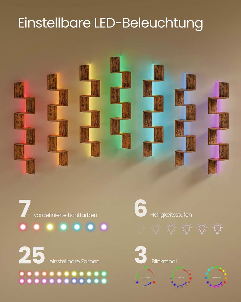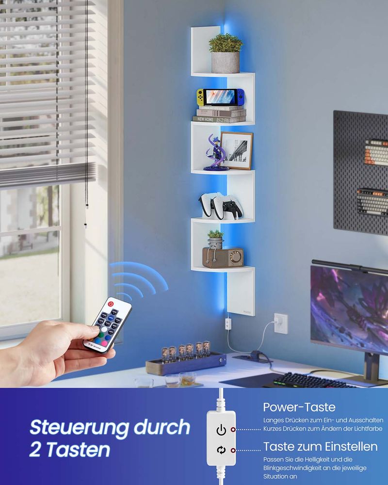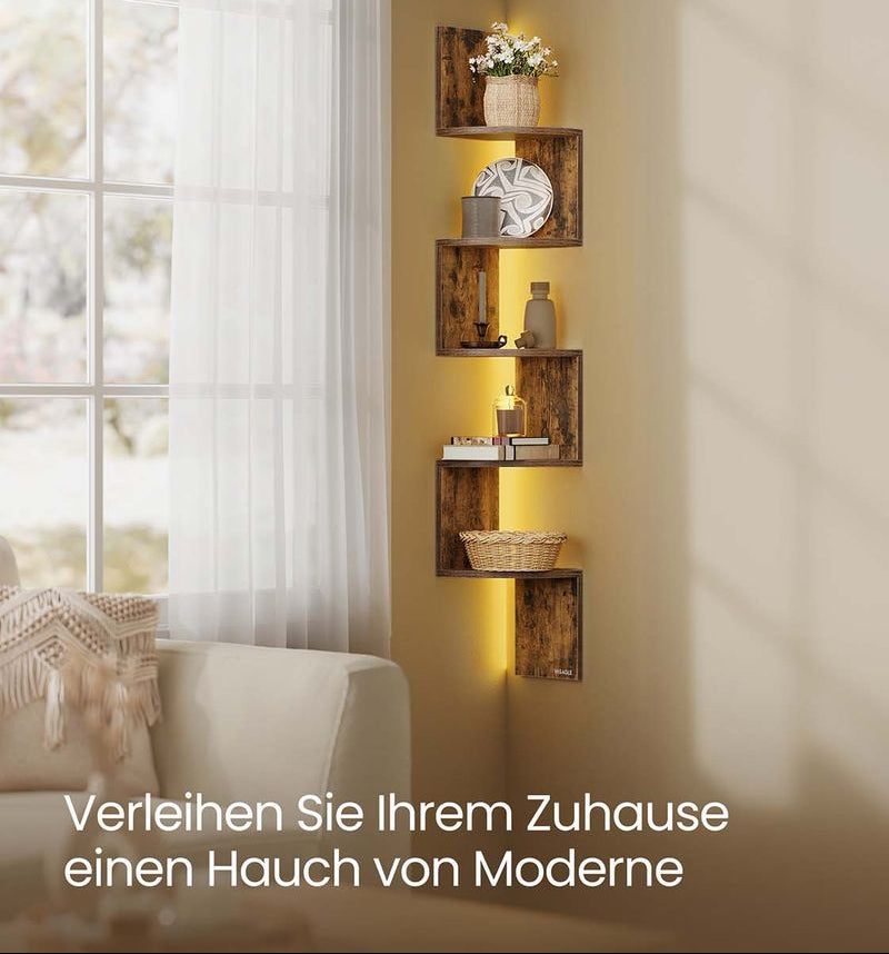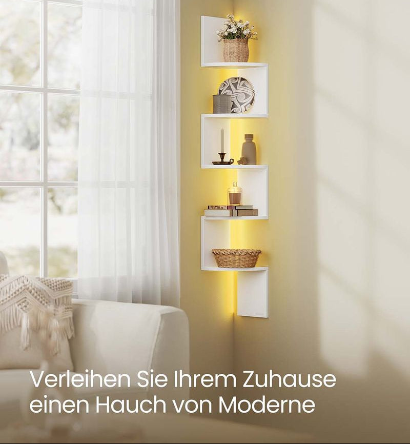 Eckregal mit LED-Beleuchtung und Zickzack-Design – 5 Ebenen, Ambientebeleuchtung und platzsparendes Design