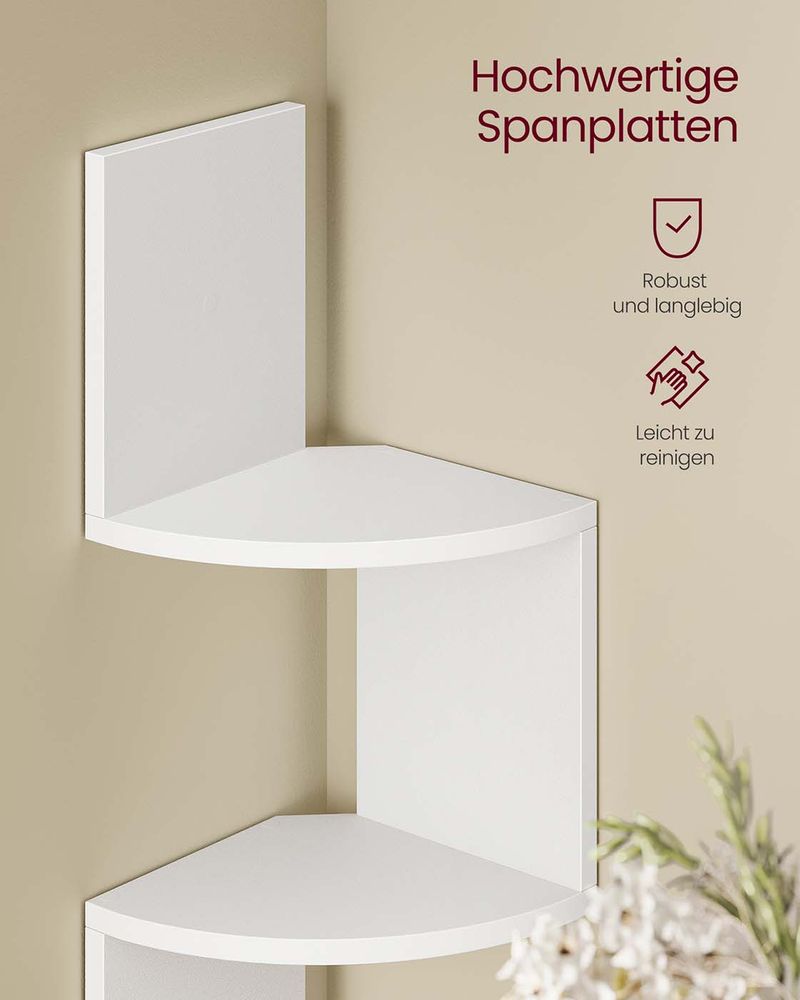 Dieses Wandregal nutzt ungenutzte Ecken optimal aus und passt perfekt in Wohnzimmer, Schlafzimmer, Badezimmer oder Büros. So schaffen Sie zusätzlichen Stauraum, ohne viel Platz zu beanspruchen.