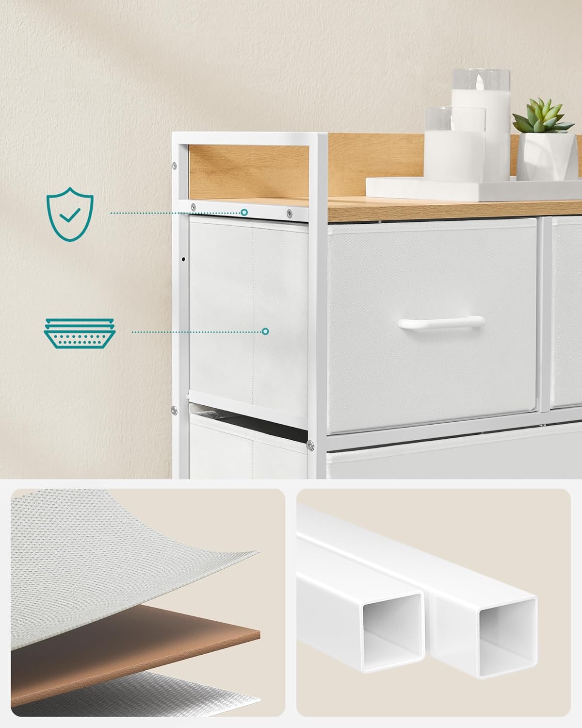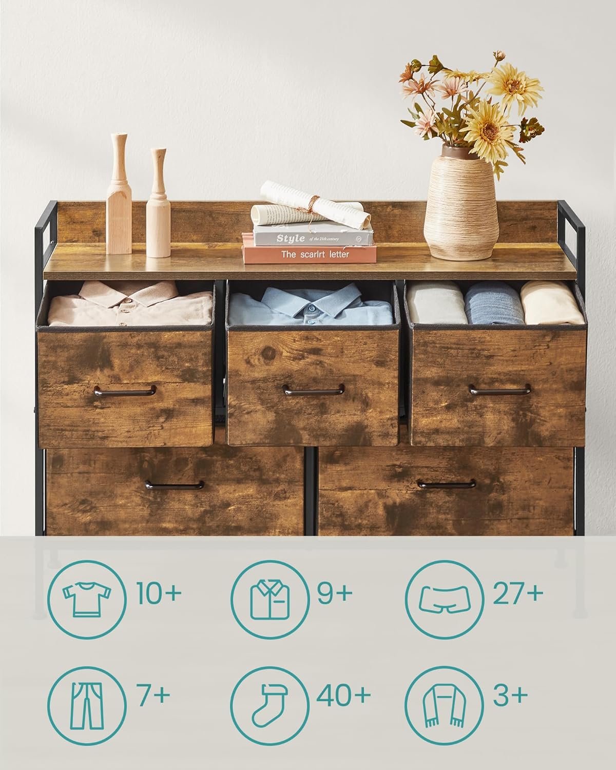 Kommode mit 5 Stoffschubladen – Schrank für Schlaf- oder Wohnzimmer – mit Seitenleisten und erhöhtem Rand – 98 cm breit