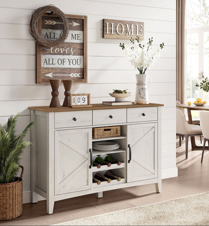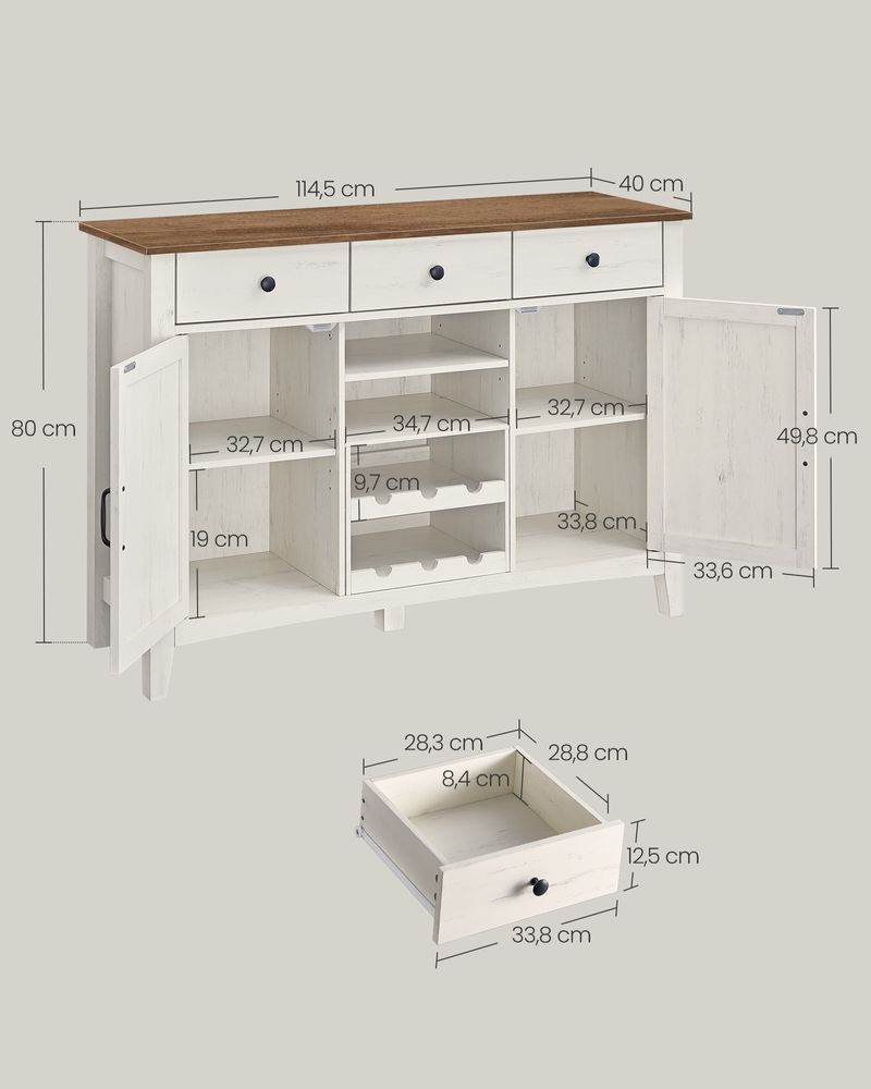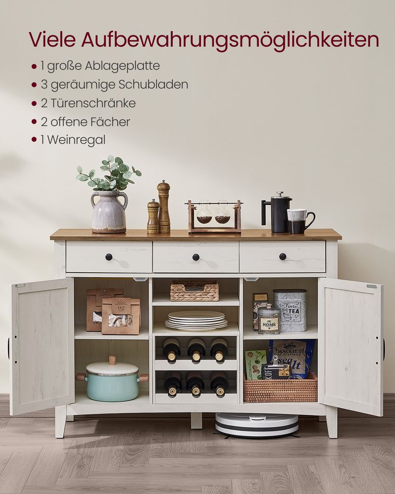 Sideboard mit Schiebetüren – Küchenschrank mit Weinregal – Landhausstil – 114,5 cm breit