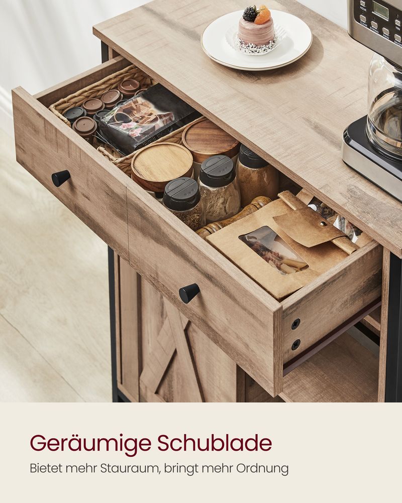 Industrieller Lagerschrank – Sideboard mit Schubladen und Türen – 120 cm breit – Metall- und Holzoptik